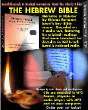 The Hebrew Bible (entire Tanach) Narrated - 4 computer CD/ROMs containing MP3 format files. The entire Hebrew Bible narrated in HebrewOn 4 audio CDs (MP3 format)!The Law, The Prophets, The Writings. (Torah, Neveeim, Ktuvim). The best Hebrew narration ever recorded with excellent intonation, diction, and accent. Eech one of these recordings was broadcast on Kol Israel, a chapter every night. These CDs can dramatically improve your Torah reading and understanding of the Hebrew Bible. This is essential especially for congregations in the preparation of the weekly Torah portion. Note: Will not play in your car unless your car supports MP3 format. Listen to a preview: Bereshit (Genesis) 1:1-5 |