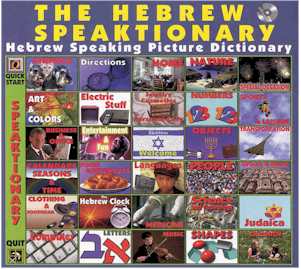 | The Hebrew Speaktionary Computer Multimedia Program - Over 1800 files of sounds, pictures, and videos - teaches words relating to art, colors, appliances, electrical stuff, clothing, people, science, technology, Judaica, children, shapes, music, computer, jewelry, cosmetics, home, nature, animals, business, office, languages, and more! PC & MAC |